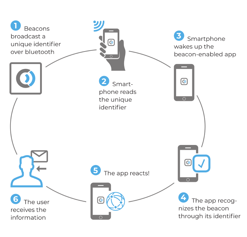 Note: The beacon are only broadcasting an ID. This means that beacons are not able to collect information or make any other data elaboration.